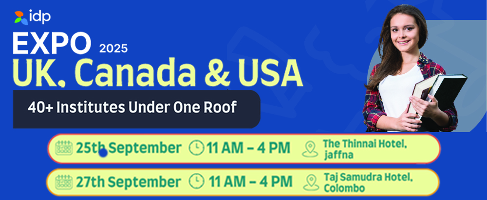 IDP Education- Global Leader in international education services, once again brings you top University representatives from UK, Canada and USA to Sri Lanka.