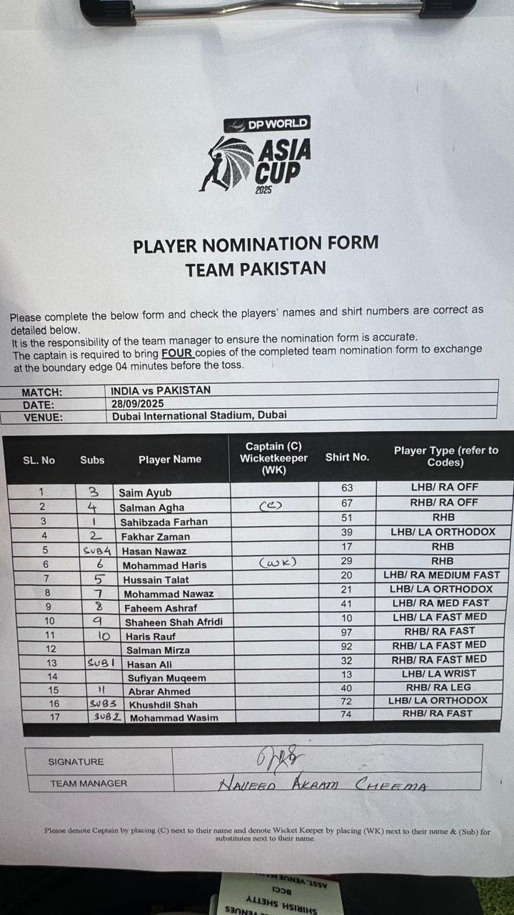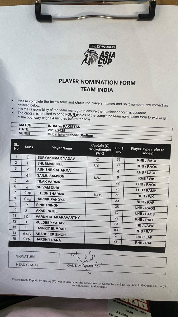 India captain Suryakumar Yadav wins toss, opts to bowl against Pakistan in Asia Cup 2025 final