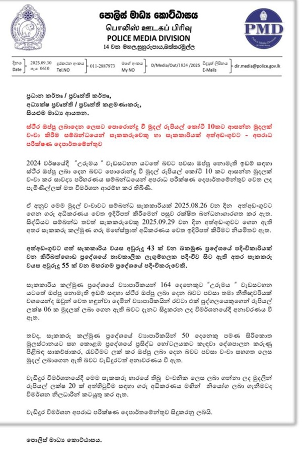 02 arrested for defrauding Rs. 100 Mn in ‘Urumaya’ deed scam