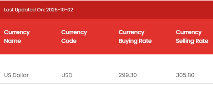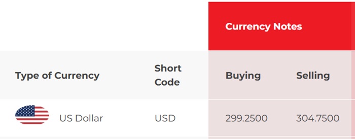 According to NDB Bank, the buying and selling rates of the US Dollar remain unchanged at Rs. 299.30 and Rs. 305.80, respectively.