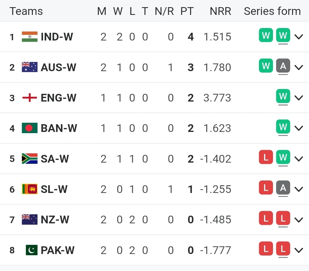 ICC Women’s World Cup 2025 Points Table