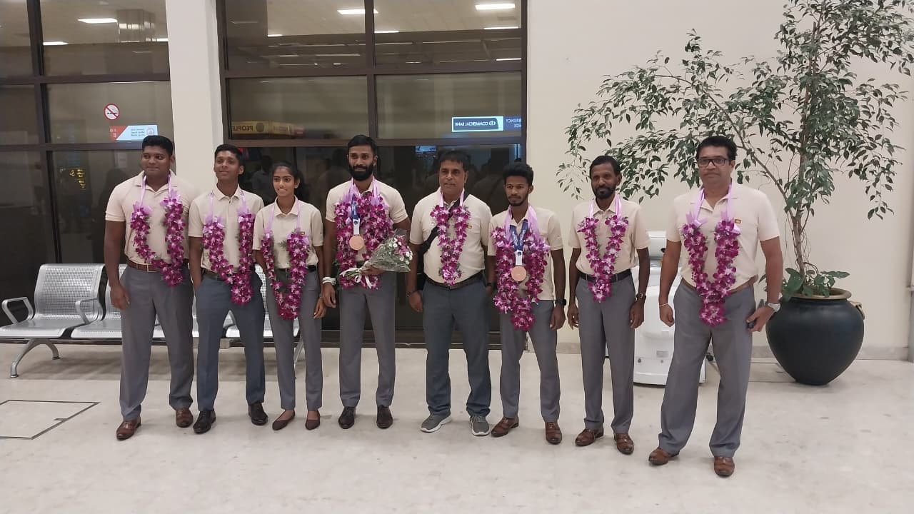 The returning athletes were welcomed at the airport by officials from the Ministry of Sports and Youth Affairs, along with representatives of the Sri Lanka Paralympic Committee, including its chairman. (Newswire)