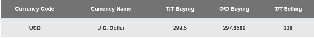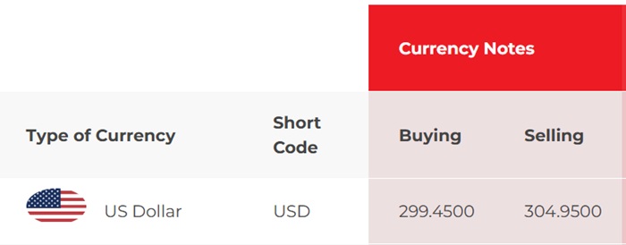 According to NDB Bank, the buying and selling rates of the US Dollar have increased from Rs. 299.35 to Rs. 299.55 and from Rs. 305.85 to Rs. 306.05, respectively.