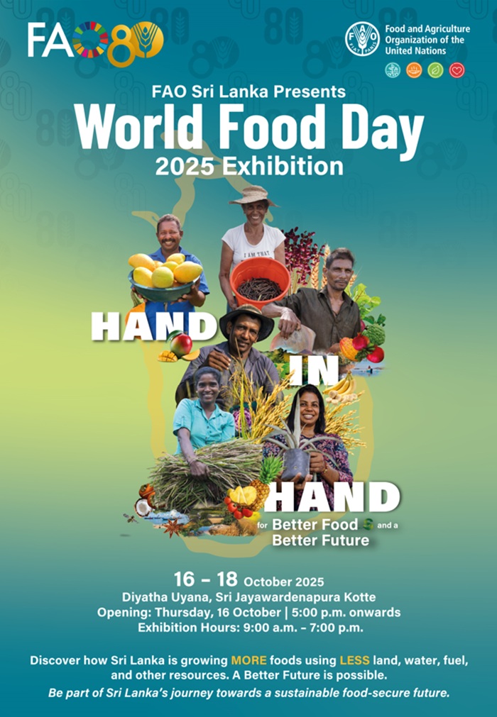 This year, on World Food Day, as FAO commemorates its 80th anniversary, we are reminded of the enduring value of multilateralism and solidarity. The call is to renew our commitment to working hand in hand – not only across the UN system, but with all partners, across sectors and across generations. Partnerships must extend from ministries to municipalities, from research labs to farmlands, from classrooms to boardrooms, ensuring that innovation and opportunity reach every Sri Lankan.