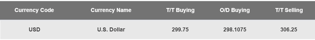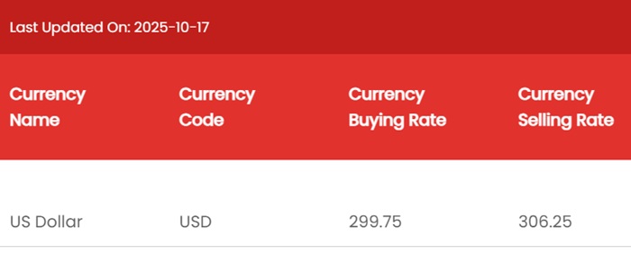 According to NDB Bank, the buying and selling rates of the US Dollar remain unchanged at Rs. 299.75 and Rs. 306.25, respectively.