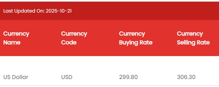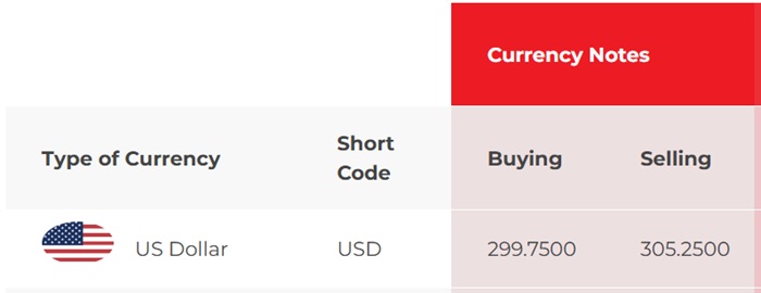 According to NDB Bank, the buying and selling rates of the US Dollar have increased from Rs. 299.75 to Rs. 299.80 and from Rs. 306.25 to Rs. 306.30, respectively.