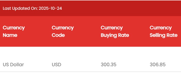 According to NDB Bank, the buying and selling rates of the US Dollar have increased from Rs. 300.15 to Rs. 300.35 and from Rs. 306.65 to Rs. 306.85, respectively.