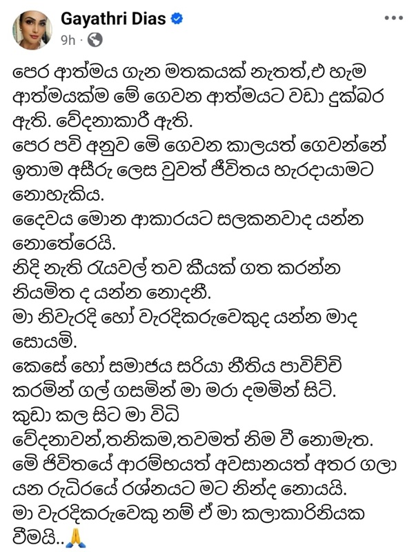 Actress Gayathri Dias has refuted social media claims linking her to the recently arrested underworld leader ‘Kehelbaddara Padme’.