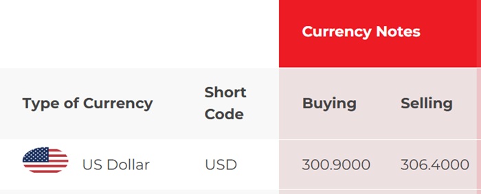 At Seylan Bank, the buying rate of the US Dollar has increased from Rs. 300.50 to Rs. 300.90, while the selling rate has also increased from Rs. 306 to Rs. 306.40.