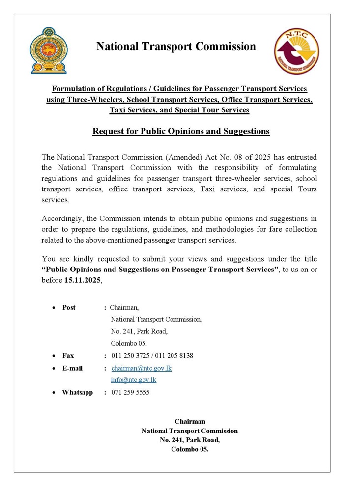 “This initiative by the National Transport Commission aims to regulate three-wheelers, school and office transport services, hired vehicles, and special tour services. As part of this, we are working to establish an organization that will act as a union for non-state transport workers, ensuring their safety and improving their living standards,” he said.