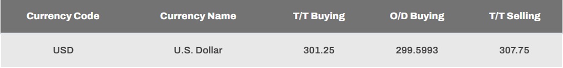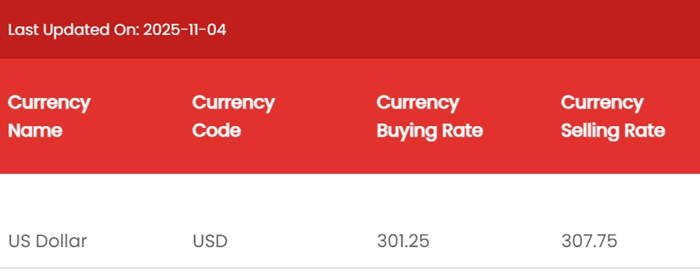 People’s Bank reports that the buying rate of the US Dollar remains unchanged at Rs. 301, while the selling rate is also unchanged at Rs. 307.63.