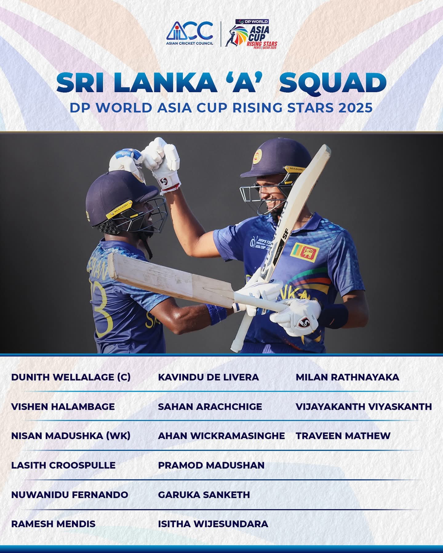 Sri Lanka A Squad for the DP world Rising Stars Asia Cup 2025 : 🏆🏏🇱🇰
