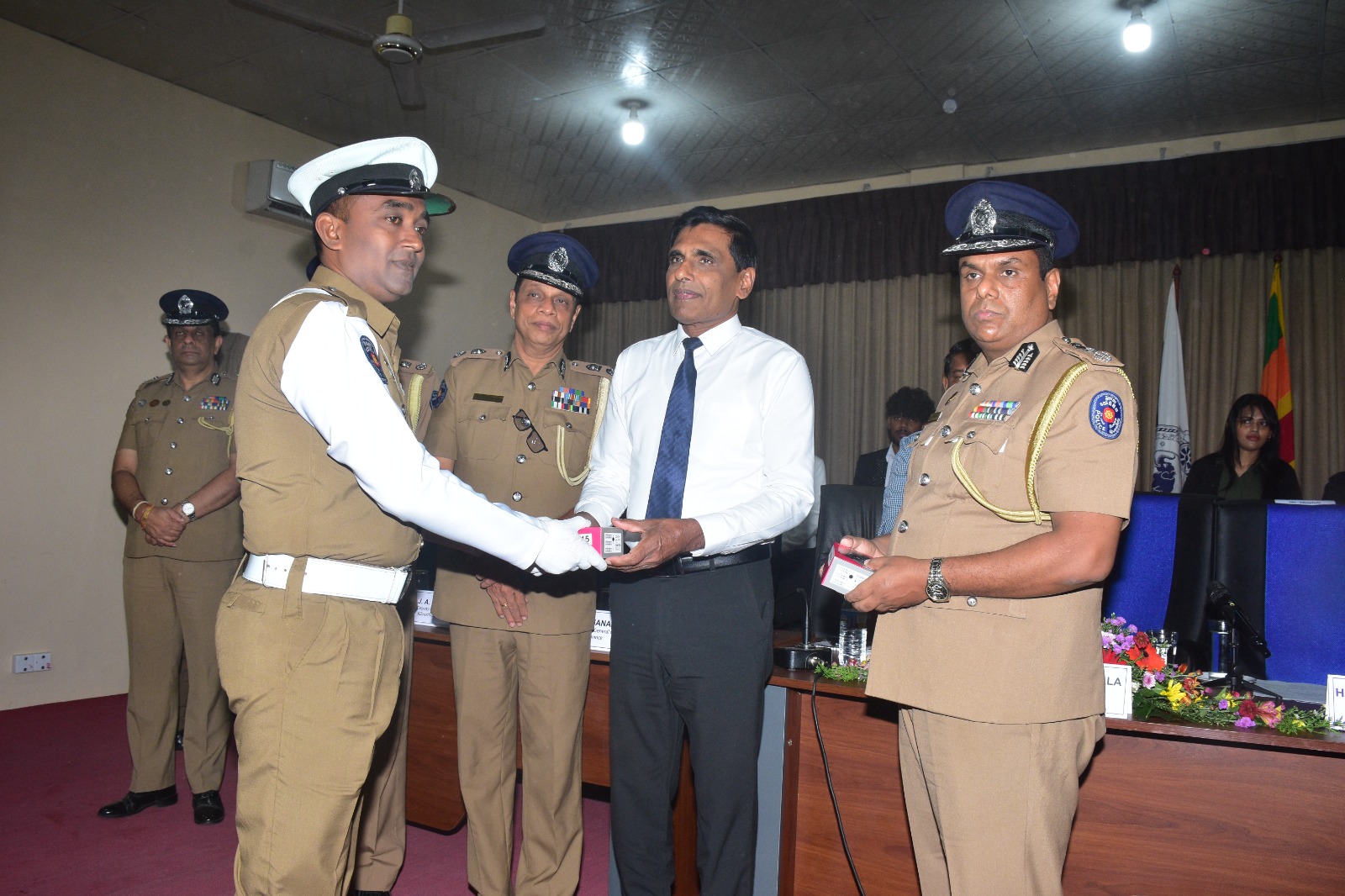 The official ceremony was held at the Kilinochchi SSP Office Auditorium under the patronage of the Minister of Public Security and Parliamentary Affairs, Hon. Ananda Wijepala, and the Inspector General of Police (IGP), Attorney-at-Law Priyantha Weerasuriya. The event was also graced by Senior DIG in charge of the Northern Province, Tilak C. A. Dhanapala; DIG Wanni Range, H. A. K. A. Indika Hapugoda; DIG Kilinochchi and Mullaitivu Range, J. A. Chandrasena; DIG Jaffna and KKS Range, G. H. Marapana; SSP Vavuniya Division, W. A. Somaratne; SSP Mannar Division, W. K. A. J. Eric Ranjith; SSP Kilinochchi Division, Jayantha de Silva; SSP Mullaitivu Division, L. A. D. Ratnaweera; SSP Jaffna Division, J. P. S. Jayamaha; and SSP Kankesanthurai Division, P. M. R. Ambepitiya. Also in attendance were Chairman of the Digital Task Force of the Ministry of Transport, Harsha Purasinghe and CEO of LankaPay, Channa de Silva along with over 150 traffic police officers representing the six police divisions of the Northern Province.