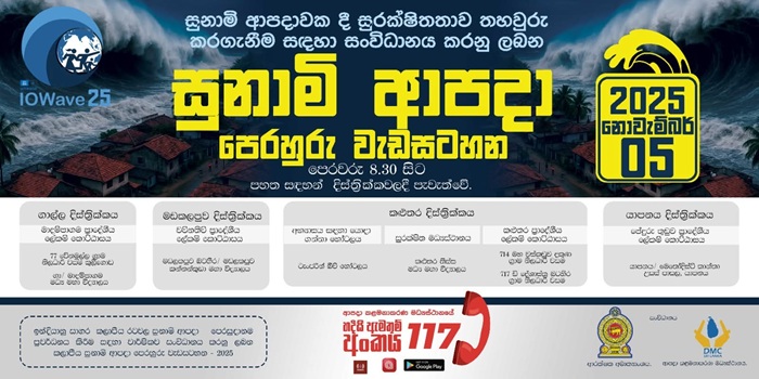 According to the Disaster Management Centre, the main national drill will commence at 8:30 am in the Kalutara district. (Newswire)