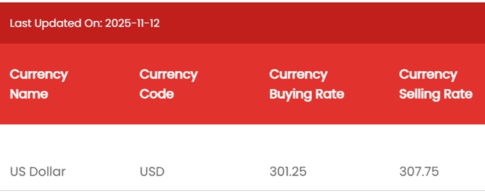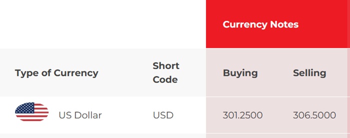 According to NDB Bank, the buying and selling rates of the US Dollar have increased from Rs. 300.90 to Rs. 301.25 and from Rs. 307.40 to Rs. 307.75, respectively.