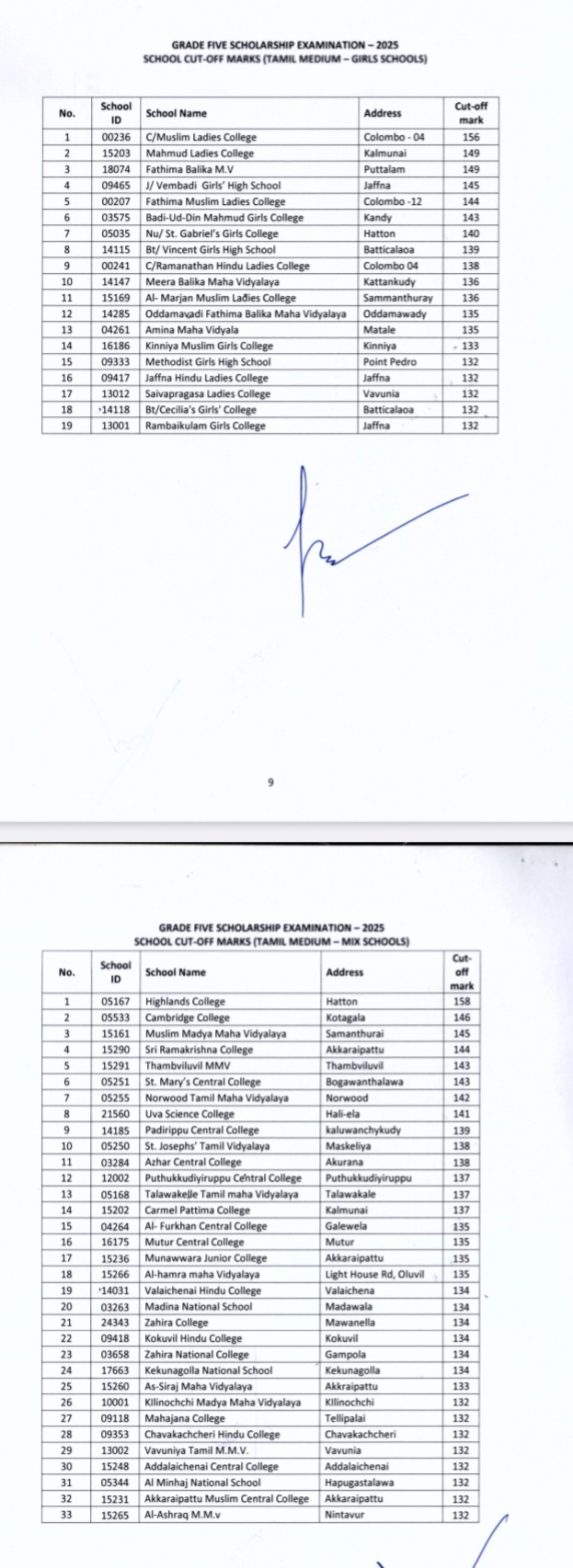 The cutoff marks for student enrollment in Grade 6 for the year 2026, based on the Grade 5 Scholarship Examination 2025, are now released and can be accessed on.