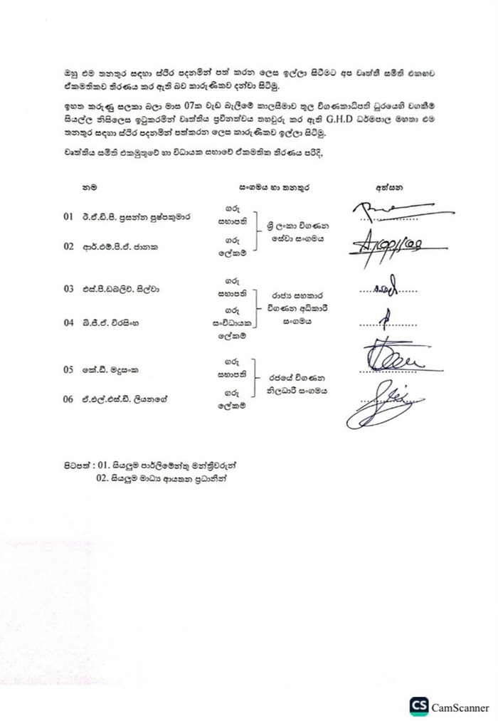 In a letter to the President, the Collective pointed out that Dharmapala has been serving in his post for the last seven months and has proven his capability, to which the Speaker of the Parliament, the Committee on Public Enterprise (COPE), and the Committee on Public Accounts bear witness.