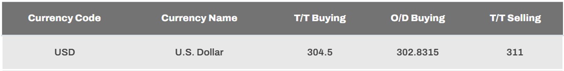 At Commercial Bank, the buying rate of the US Dollar remains unchanged at Rs. 302.50, while the selling rate is also unchanged at Rs. 311.