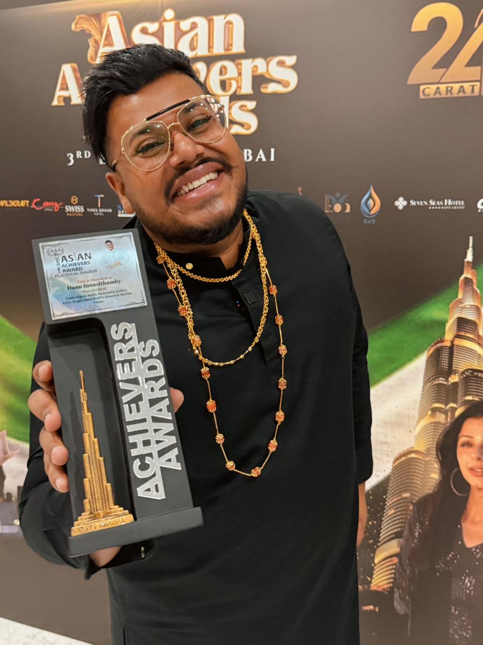 Sri Lankan media personality Danu Innasithamby, Head of Channel at Hi TV, author, actor, singer, Edward R. Murrow Fellow, and Goodwill Ambassador for World Vision Sri Lanka (since 2024), has been honoured with the distinguished Platinum Award at the Asian Achievers Awards 2025, held at the Seven Seas Hotel, Dubai.