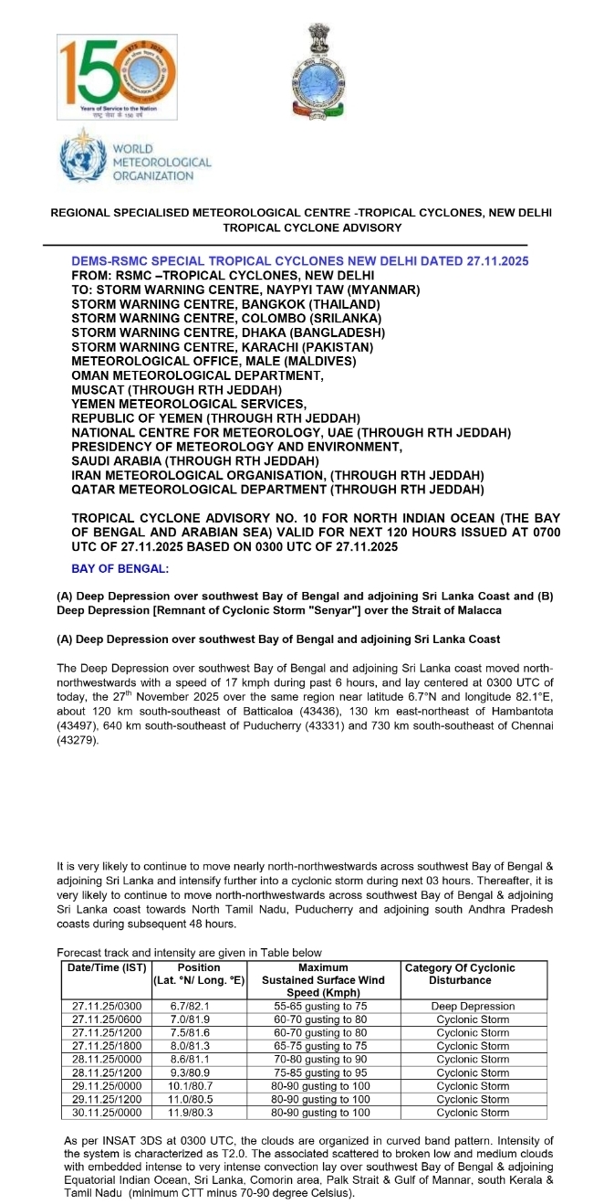 Cyclonic Storm ‘Ditwah’ : Update from Indian Met Department