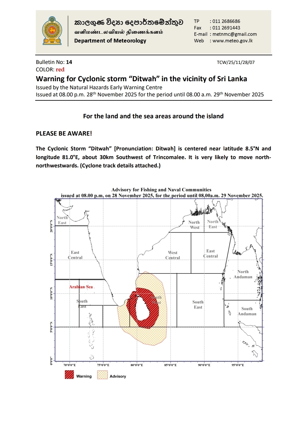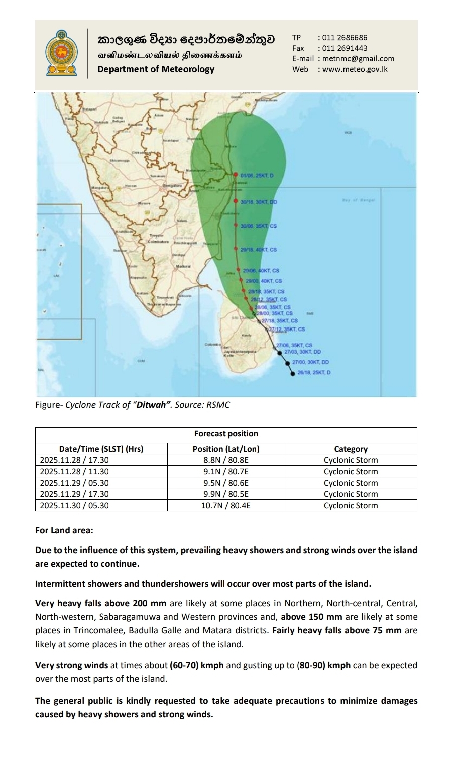 Sri Lanka Extreme Weather as Cyclone Ditwah Intensifies — Live Updates