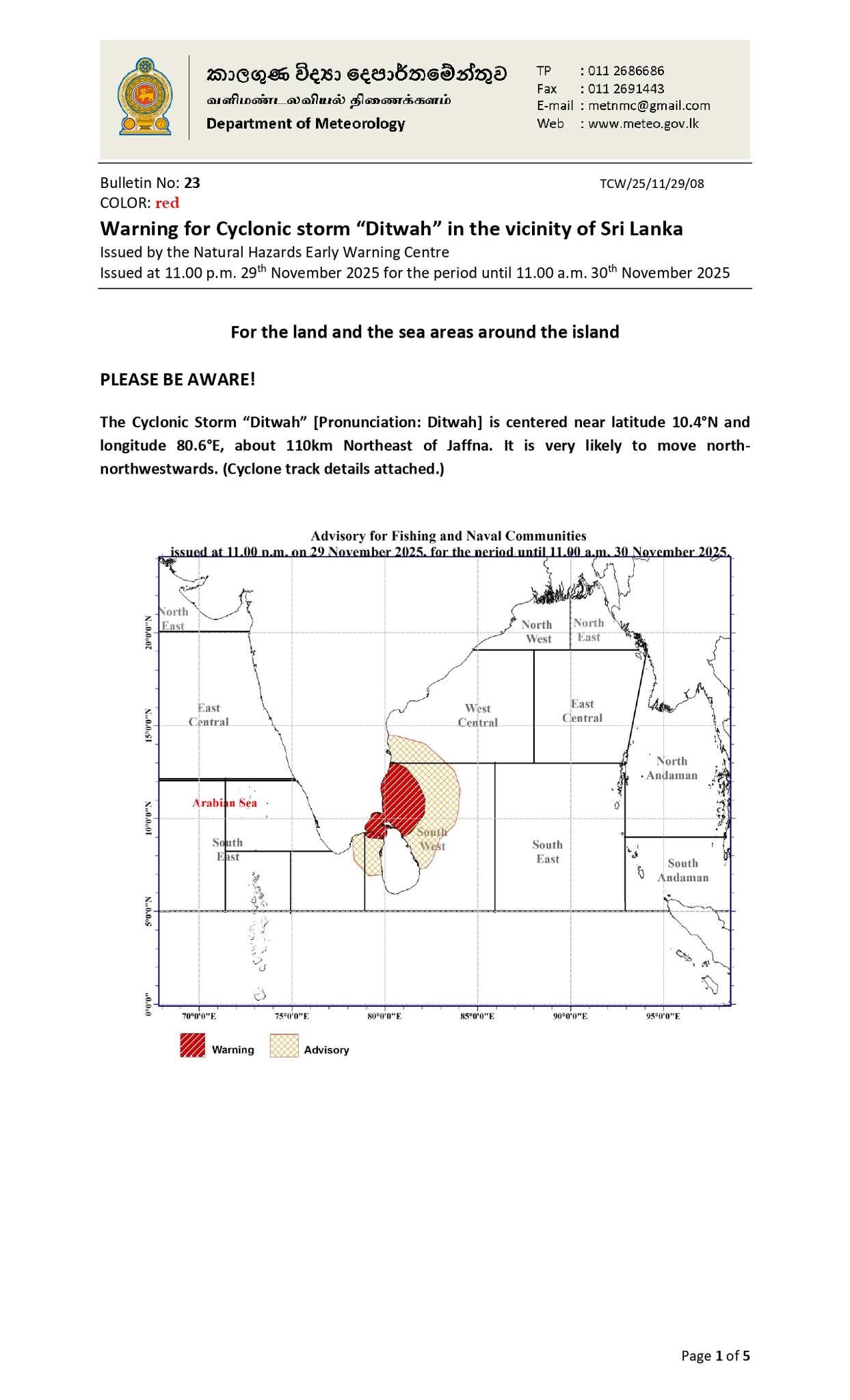Cyclone Ditwah Moves Away From Sri Lanka; System Weakening