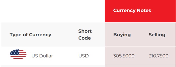 According to NDB Bank, the buying and selling rates of the US Dollar have increased from Rs. 307.50 to Rs. 307.55 and from Rs. 312 to Rs. 312.05, respectively.
