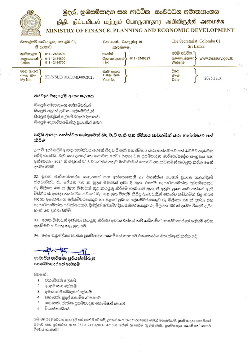 •Department Heads, District Secretaries, and Government Agents may authorize up to Rs. 100 million.