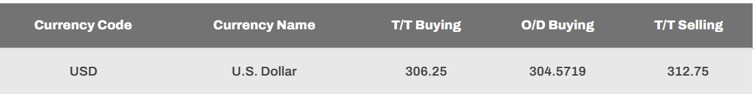 At Commercial Bank, the buying and selling rates of the US Dollar have increased from Rs. 303.75 to Rs. 303.99 and from Rs. 312.25 to Rs. 312.50, respectively.