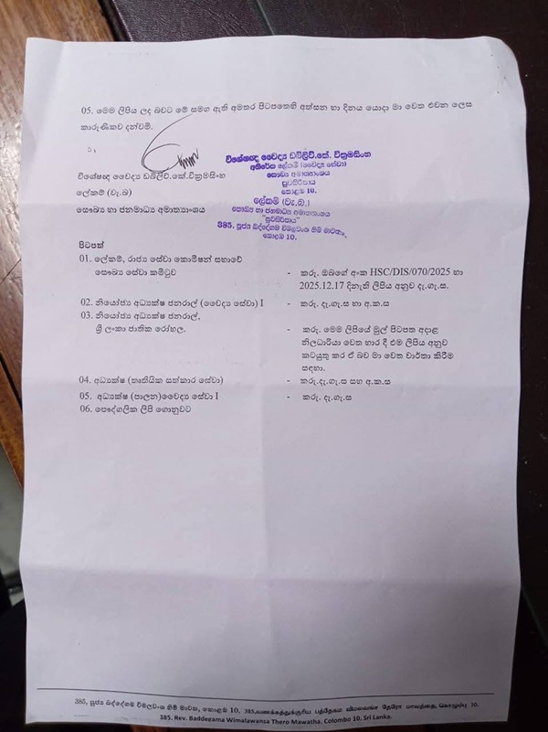 According to the letter, preliminary investigations by the Ministry of Health revealed that Dr. Bellana, as a government medical officer holding a responsible position, had made statements to the media without approval, in a manner that created a controversial situation in the country and unrest among the public.