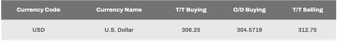 According to Sampath Bank, the buying rate of the US Dollar remains unchanged at Rs. 306.25, and the selling rate at Rs. 312.75. (Newswire)