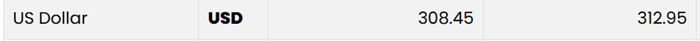 According to the NDB Bank, the buying rate is Rs. 308.45, while the selling rate is Rs. 312.95.