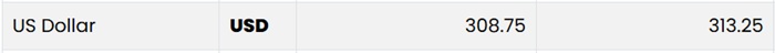 According to the NDB Bank, the buying rate is Rs. 308.75, while the selling rate is Rs. 313.25.