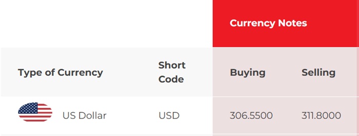 People’s Bank reports the buying rate of the US Dollar is Rs. 306.53, and the selling rate is Rs. 313.29.