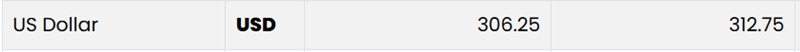 According to the NDB Bank, the buying rate has reduced from Rs. 308.25 to Rs. 306.25, while the selling rate is unchanged at Rs. 312.75.