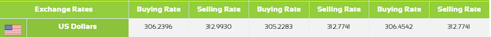 According to the NDB Bank, the buying rate has increased slightly from Rs. 306.25 to Rs. 306.55 while the selling rate increased from Rs. 312.75 to Rs. 313.05.