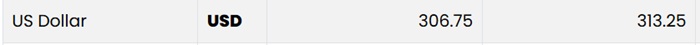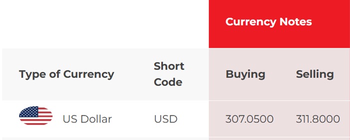 According to the NDB Bank, the buying rate has increased slightly to Rs. 306.75, while the selling rate has also increased to Rs. 313.25.