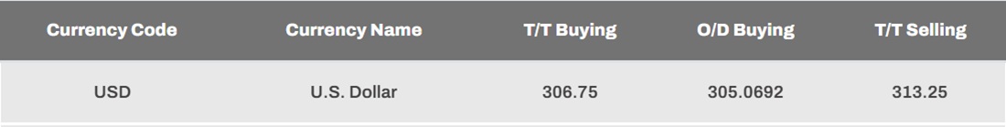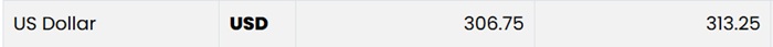 According to NDB Bank, the buying rate is unchanged at Rs. 306.75, while the selling rate is also unchanged at Rs. 313.25.