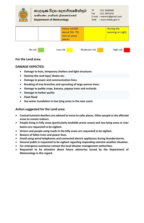 The advisory is effective for the Northern, North-Central, Eastern, Sabragamuwa, Western, Southern, Uva, North-Western, and Central Provinces. (Newswire)