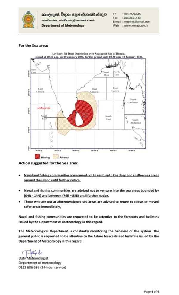 The deep depression in the Bay of Bengal, to the southeast of Sri Lanka, is located about 160 km East of Pottuvil as at 10:00 am today (09 Jan).