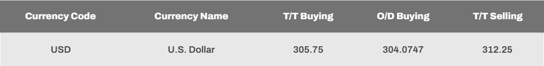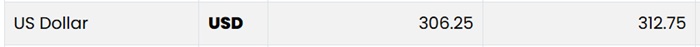 According to NDB Bank, the buying rate has reduced to Rs. 306.25, while the selling rate has also reduced to Rs. 312.75.