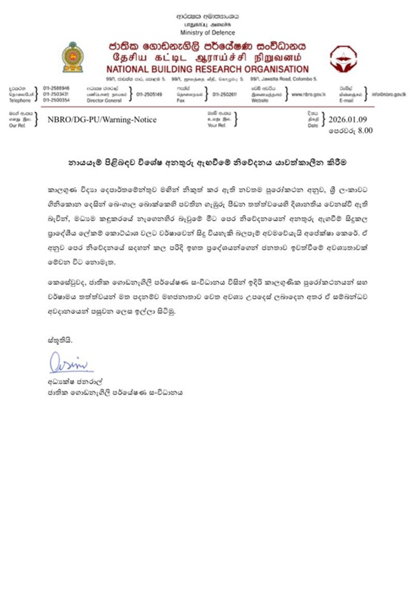 The National Building Research Organization (NBRO) has announced that updated forecasts from the Department of Meteorology show a shift in the deep depression’s movement in the Bay of Bengal.