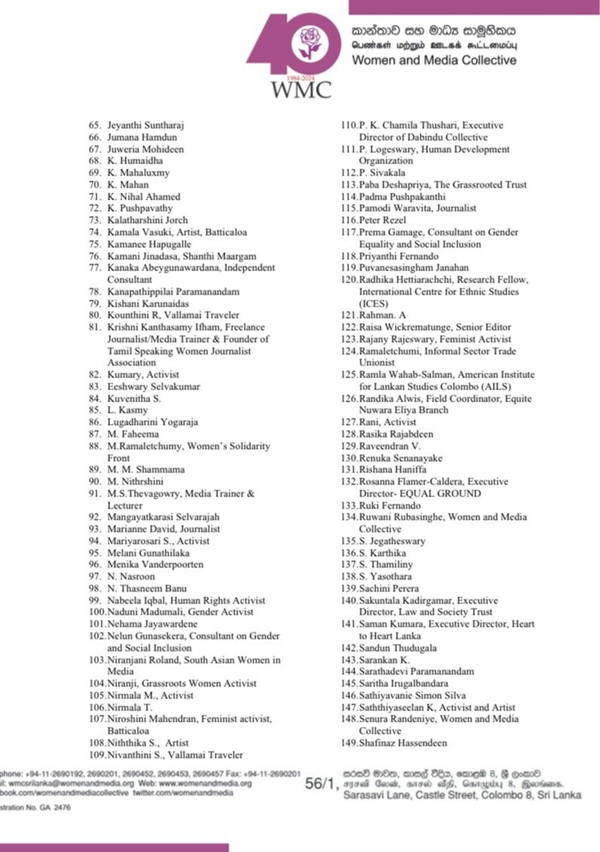 The WMC urged the Government of Sri Lanka to prevent, investigate, and prosecute all acts of gender-based political violence, both online and offline.