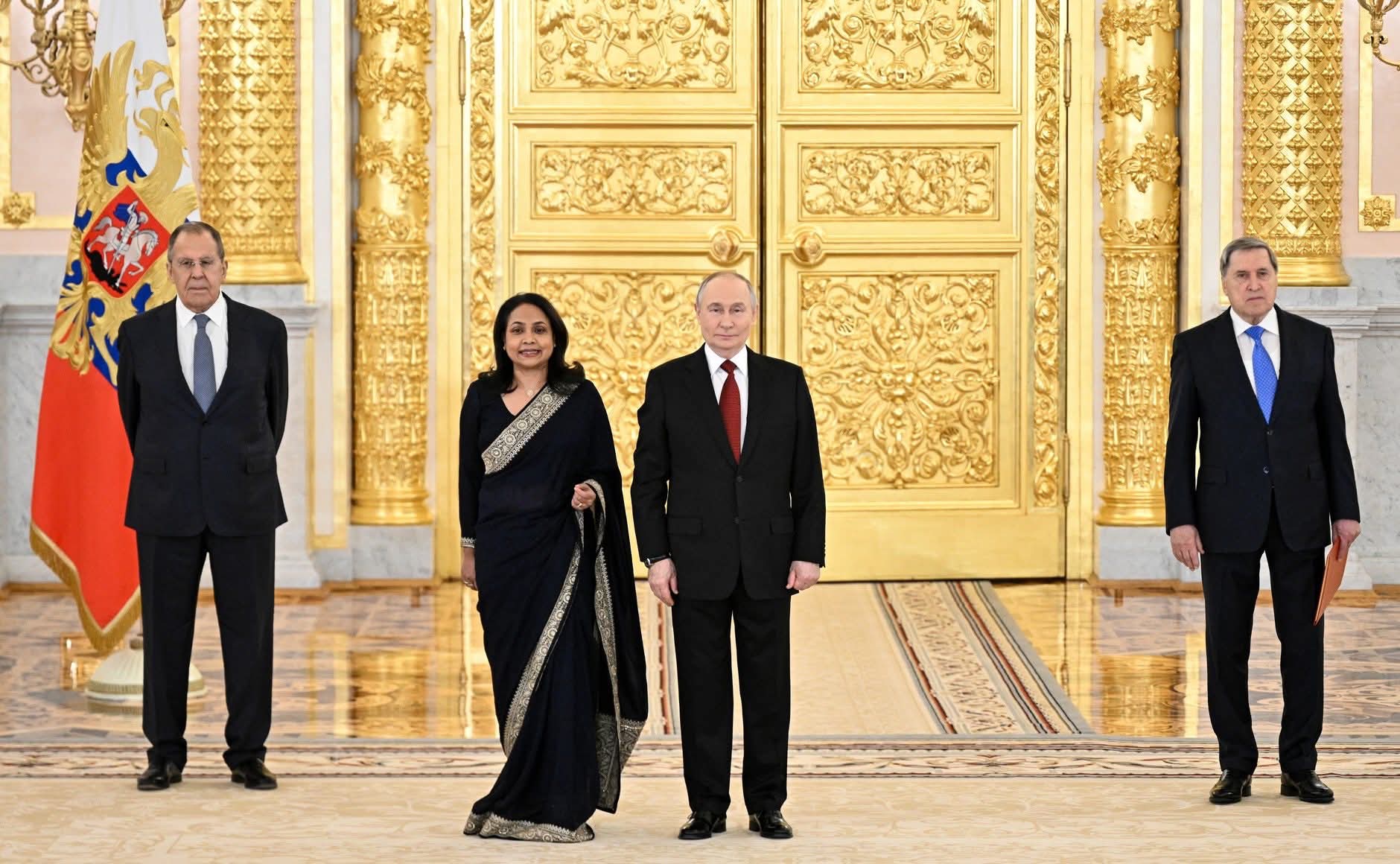 The ceremony was conducted in accordance with established diplomatic protocol. President Putin was accompanied by Russian Foreign Minister Sergey Lavrov and Foreign Policy Adviser Yury Ushakov.