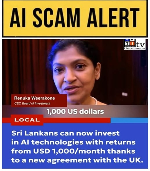 The Board of Investment of Sri Lanka (BOI) has issued a warning to stakeholders and the public regarding a fraudulent AI-generated video circulating on social media.