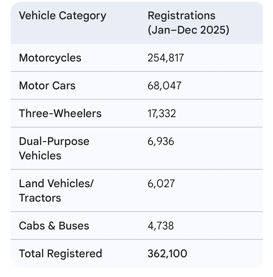 Data from the DMT highlights a massive influx of vehicles throughout 2025: