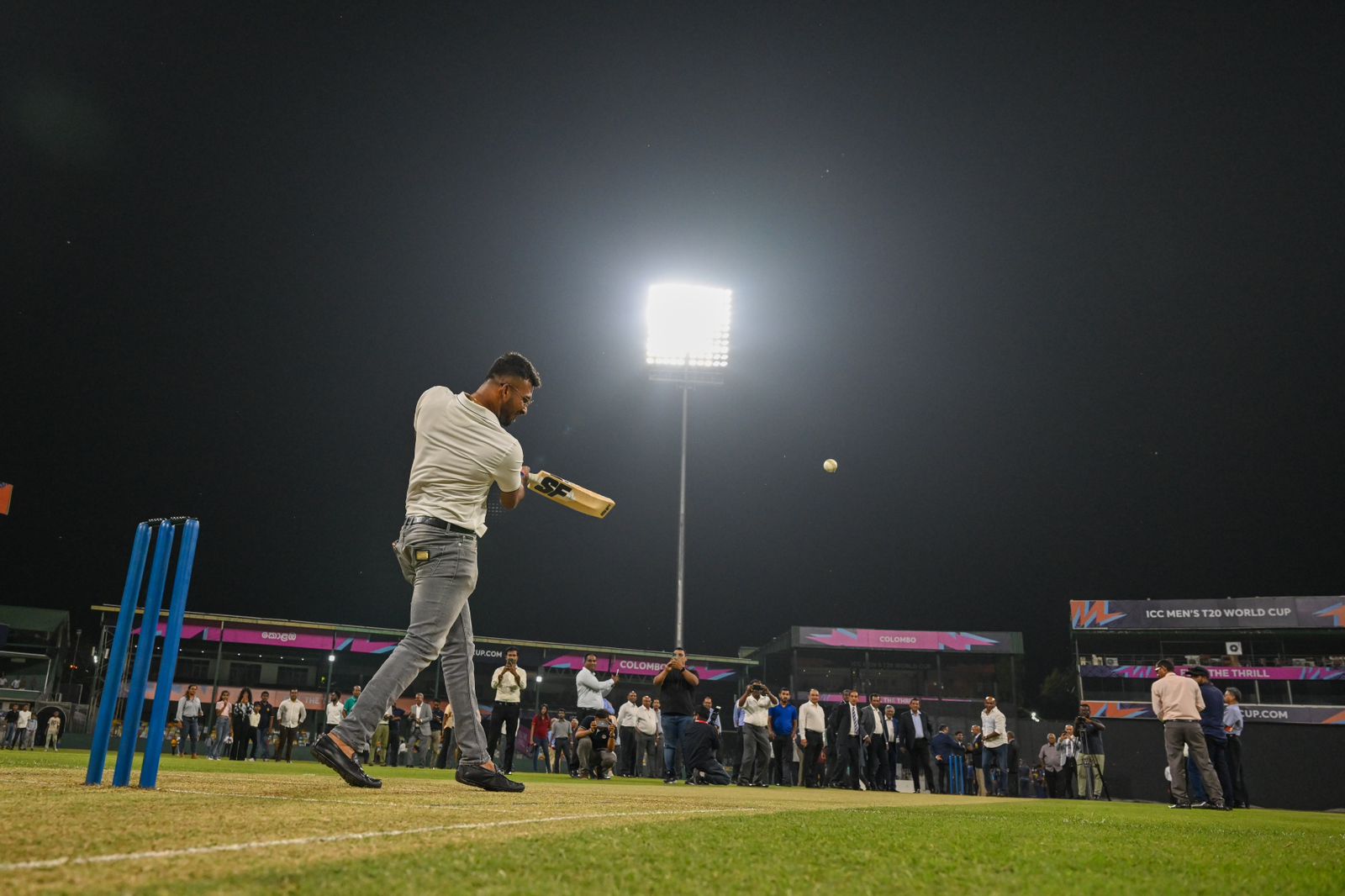 The floodlights were officially opened by Sports Minister Sunil Kumara Gamage, with Sri Lanka captain Dasun Shanaka bowling the inaugural delivery to Jayasuriya before the ceremonial friendly match between SSC and the Sri Lanka Cricket (SLC) Development team.