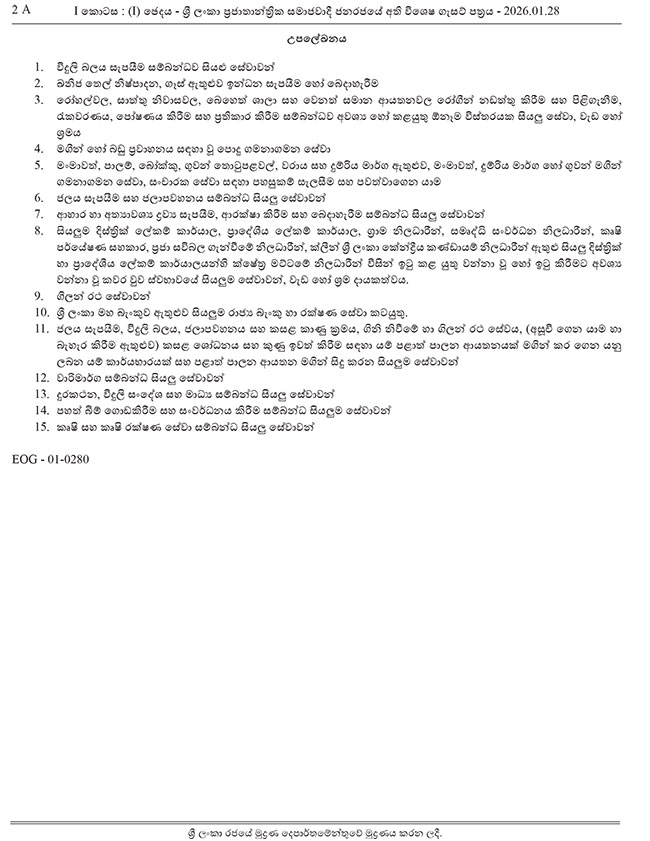 A special gazette notification has declared a range of services as essential, including electricity supply, fuel and petroleum products, gas distribution, hospitals and clinics, and passenger and goods transportation.