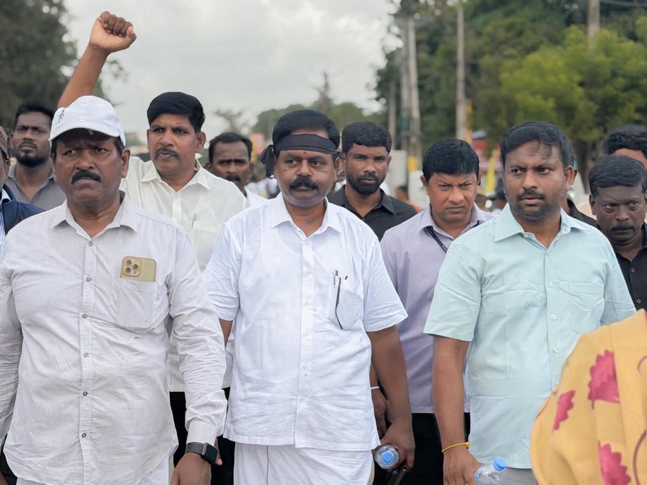 The march, which began at the Kandaswamy Temple premises in Kilinochchi, proceeded to the Depot Junction before concluding with a Black Day declaration by a collective of civil society organisations.