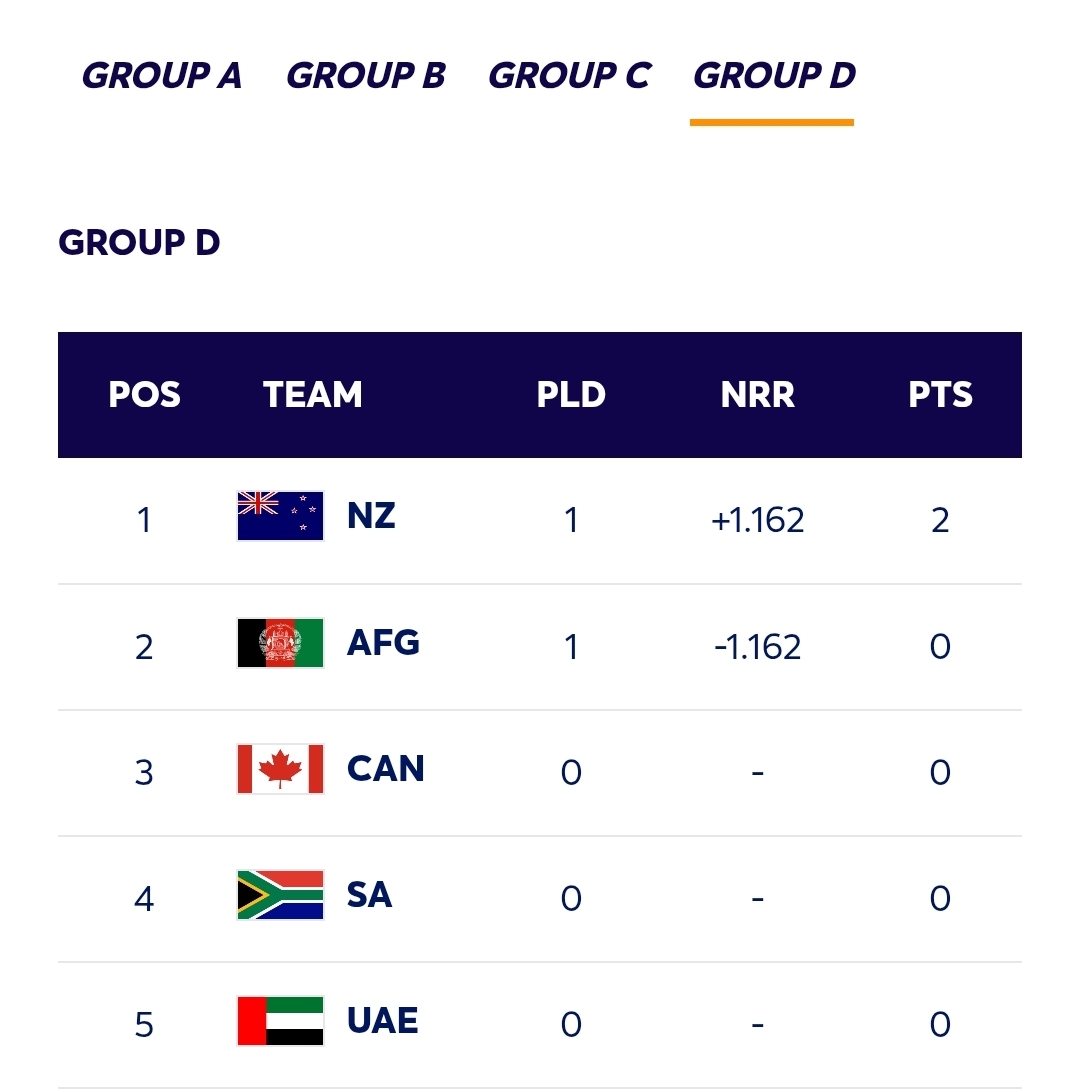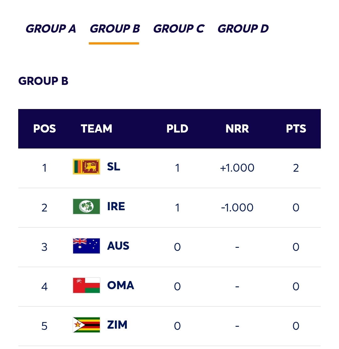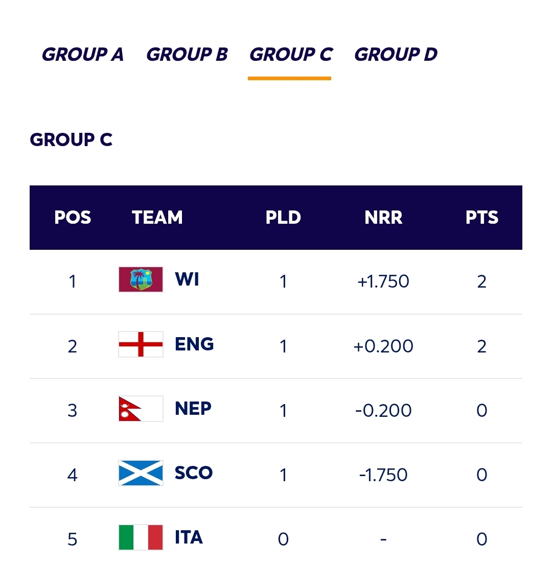 ICC T20 World Cup 2026 – Points Table